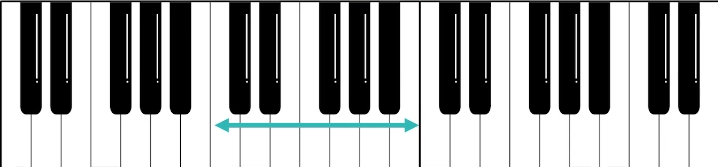 钢琴排除个别特殊的键, 可以分成若干组 每一组都有7个白键 5个黑键 如图为一组 助记: 两个黑键开始 三个黑键结束
