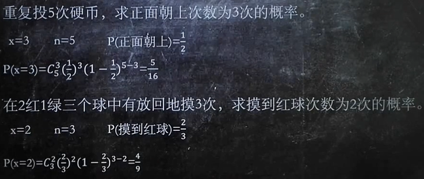 梗概: 重复某件事n次,每一次事件只有两个结果, 且事件相互独立 概率密度函数: P(X=x)=C重复次数xpx(1−p)重复次数−x 符号记法: B(n, p) 性质 1. 数字特征 数学期望: np ⭐ 方差: np(1-p)⭐ 2. child::再生性 设 X1,X2 独立,分别服从二项分布 B(n1,p) 和 B(n2,p) ,那么 Y=X1+X2 服从二项分 布 B(n1+n2,p) 实例: