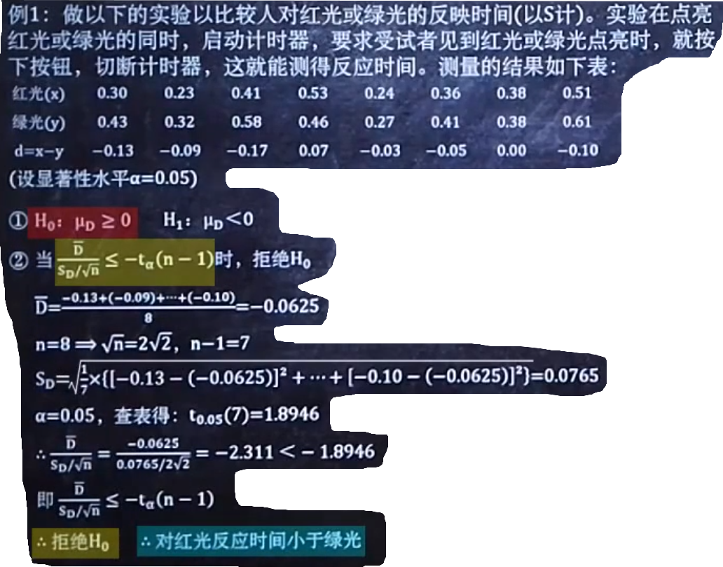 • 根据给出的两个总体, 样本两两成对对应, 作相同运算, 得到第三组样本总体, 对第三组样本总体的假设作检验 child::