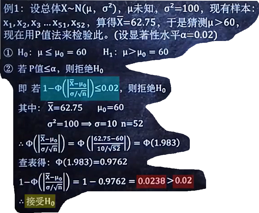 • 如果P值**≤**显著性水平α,则拒绝,否则接受