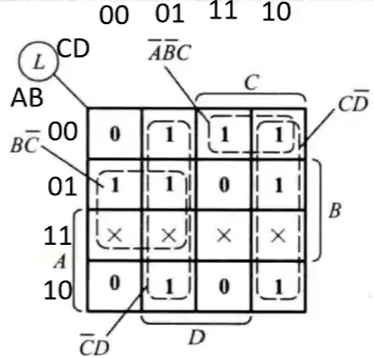 梗概 其实就是特殊的真值表 相邻的列或行都只能有一个比特不相同 实例: 1. 对于三个输入变量 1.1. 图解 2. 对于四个输入变量 2.1. 图解 这个×是指0或1都行 作卡诺图 child::作卡诺图