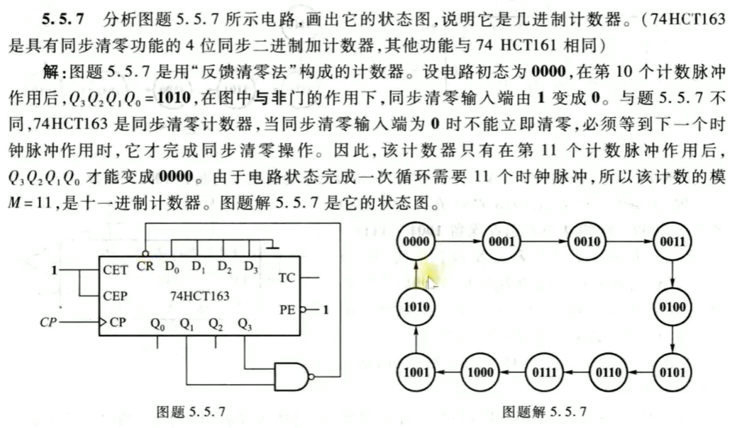 • 如163是同步清零, 当CR=1时, 且CP时钟信号到来, 状态才设置为0000