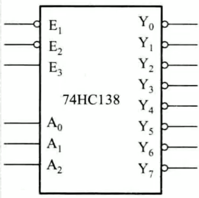 梗概: 是一个3线-8线译码器 1. 图解: child::器件中的小圆点 1.1. 工作条件 Eˉ1,Eˉ2,E3三个为输入使能端, 取三个特殊的输入时, 该译码器才开始工作 通常用来做译码器级联 当分别取0, 0, 1时, 才开始工作 即E1E2E3表达式为1才工作 1.2. 输入 A0,A1,A2构成了三位二进制, 其取值可以对应八种最小项 如分别取0, 1, 0时, 对应最小项:m2 1.3. 输出 输出端中, 只会有一个输出同时有效 Yˉ0=mˉ0 Yˉ1=mˉ1 … 例题 数电_第三讲_第5课时_哔哩哔哩_bilibili