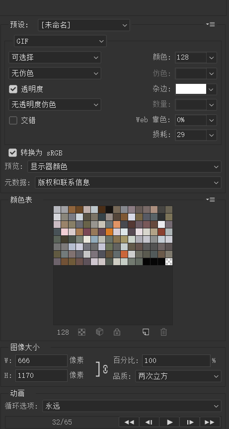 再根据需求调整图像大小;损耗调整范围:0~40;调整颜色位数;调整仿色;其他不用动;