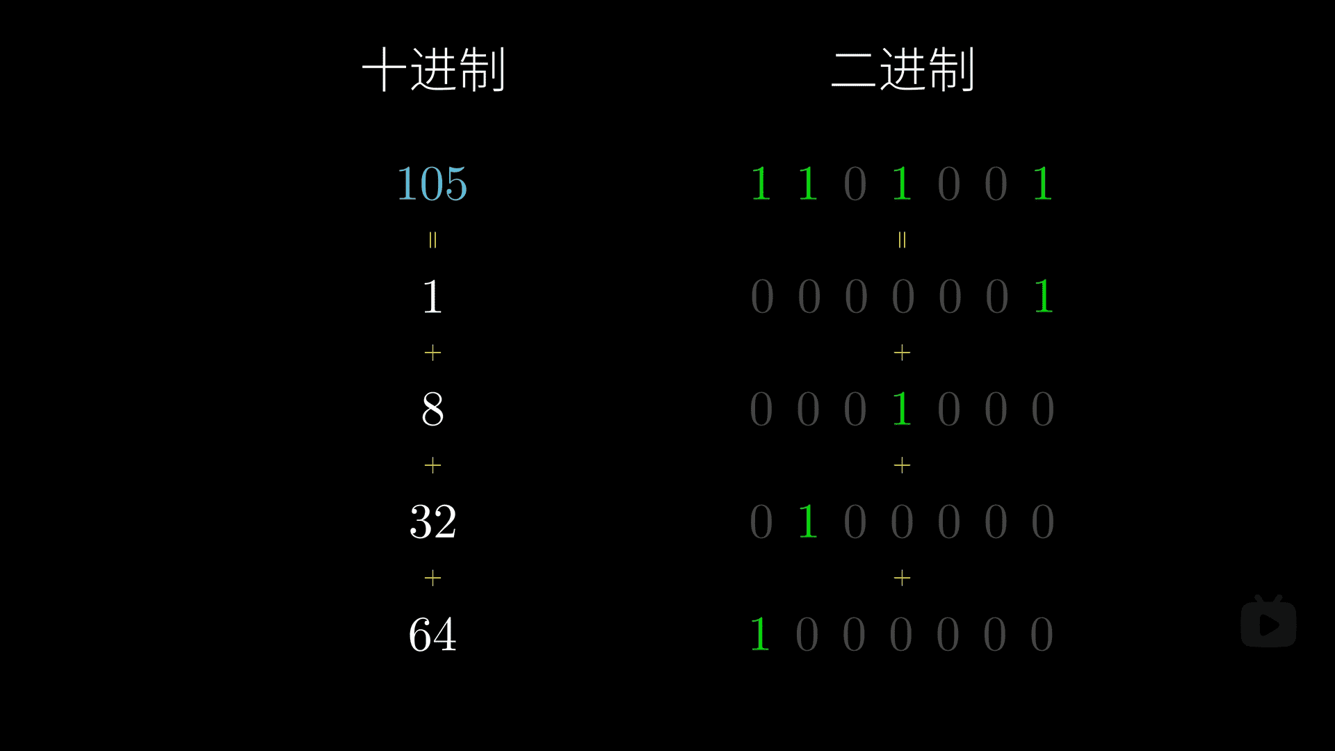 如图,任意一个正整数都可以表示成数个2的n次方之和。所以如a^105 = a*(a^8)(a^32)(a^64)