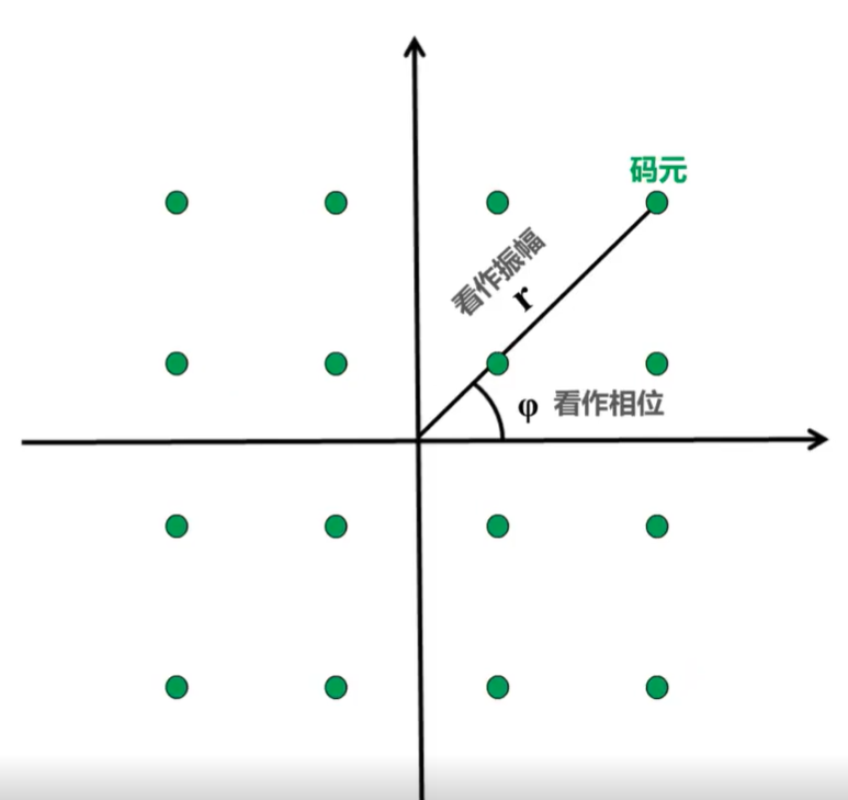 梗概: 联合调整波形的振幅与相位, 可以调制出16种波形, 即16种码元 每种波形可以表示4个比特的数据 码元星座图: 把16种波形在直角坐标系种表示出来 16种码元与16个四位二进制数的对应关系: 采用格雷码 即星座图中任意相邻的两个码元都所对应的二进制数只有一位不同