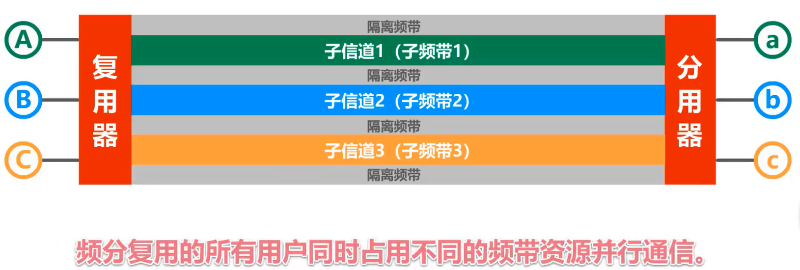 把一个信道划分为多个频段(频带), 单个用户主机固定占用指定的单个频带