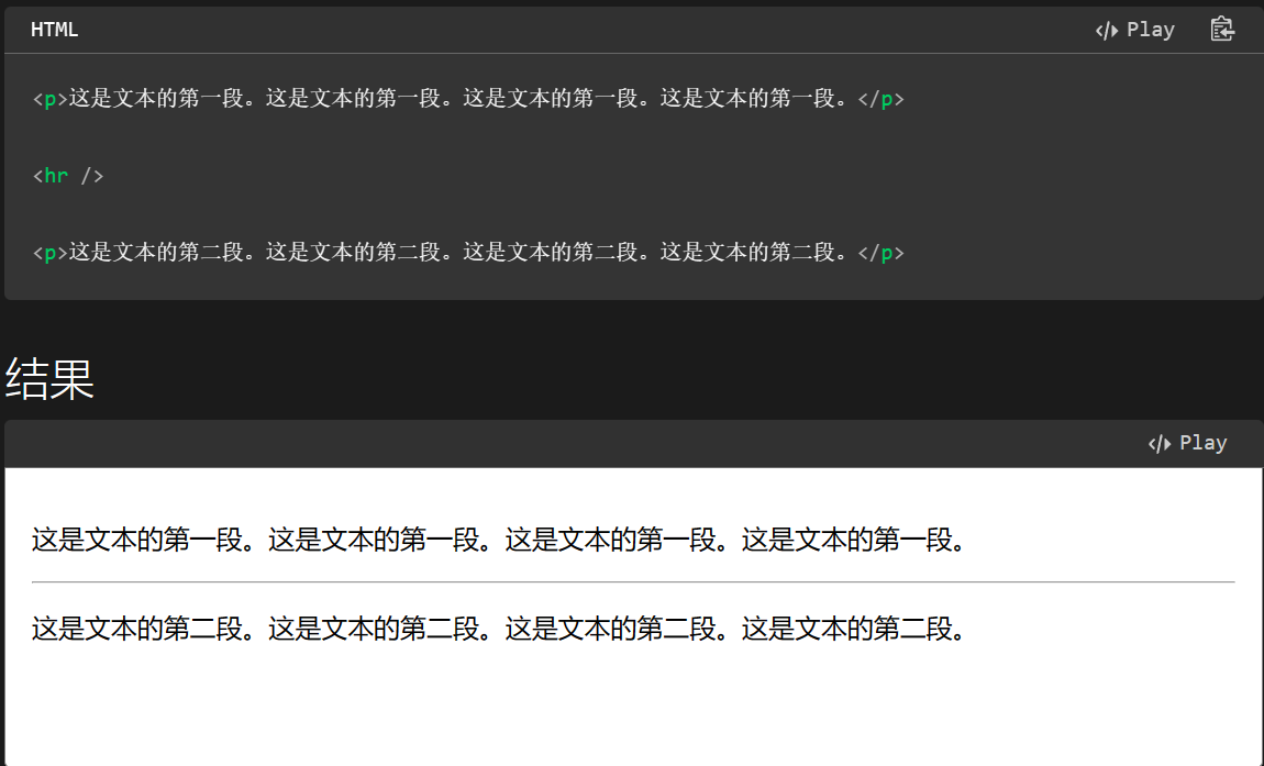 表示分割线,把一段内容与另一段内容分隔开