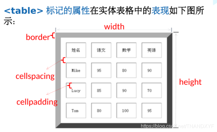 table标签的基本属性如下图所示: