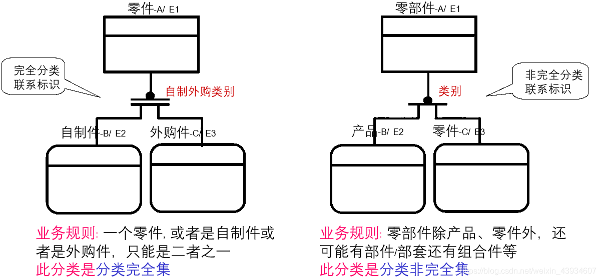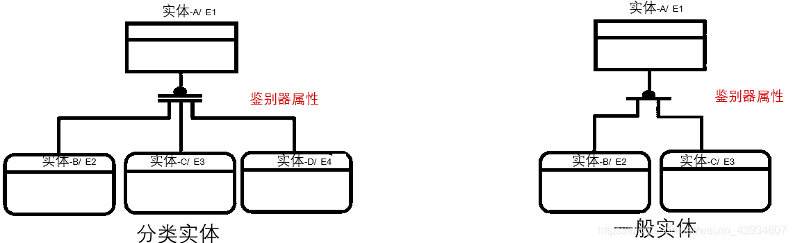 - 分类实体的主关键字属性必须和一般实体主关键字属性相同。