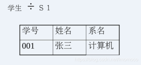 实例 S1: R÷S1=学生表中年龄为19的学生信息的新表格,但这个新表格中的字段不包括年龄。 答案如下: S2: 那结果就是在学生表中,同时满足S2所有条件的学生信息,但没有S2中的字段的新表。如下图: 学生÷S2