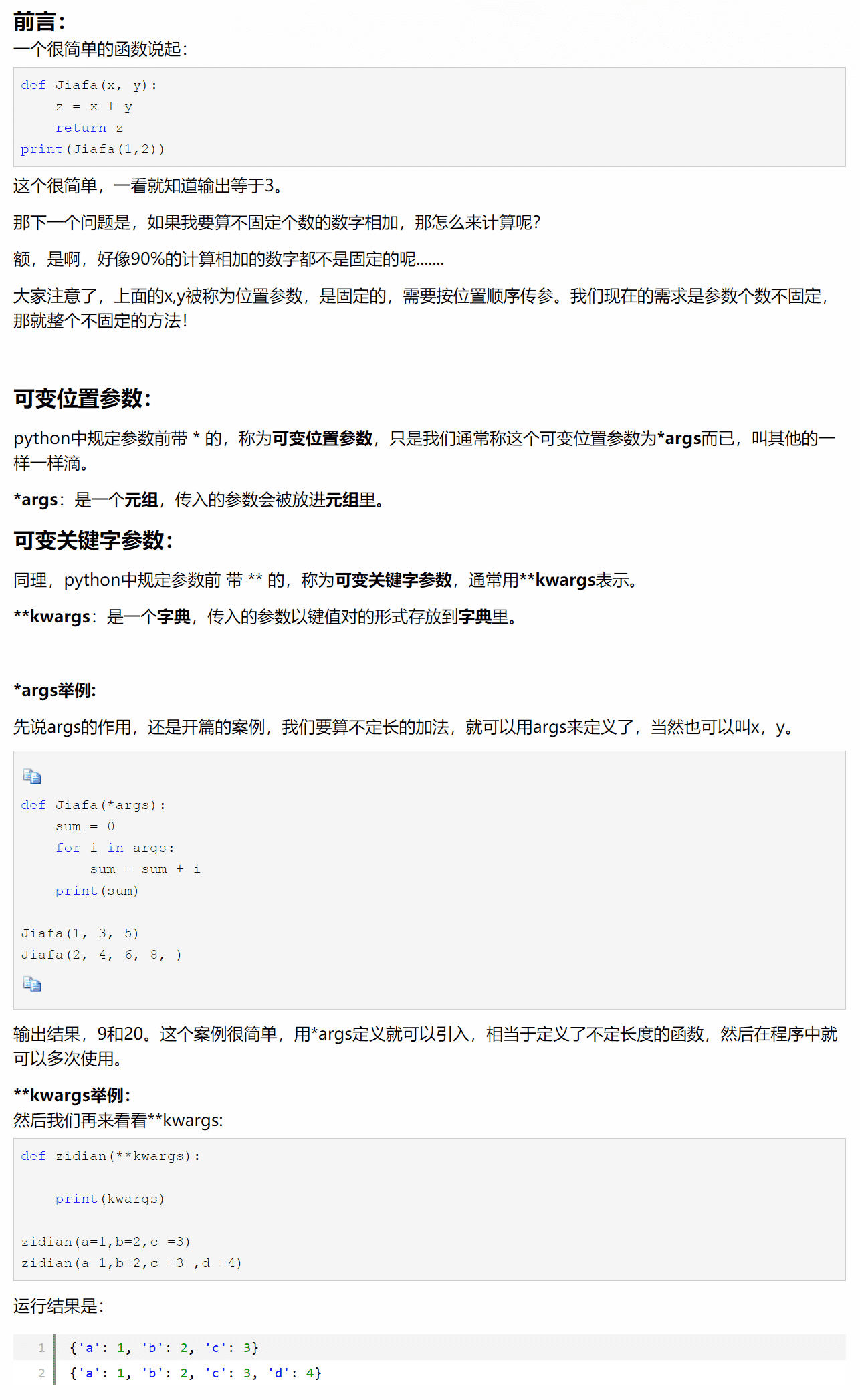 **参数 表示可变关键字参数, 用字典得方式把传进来的参数 (形式为 a=1 等) 储存为相应得键和值