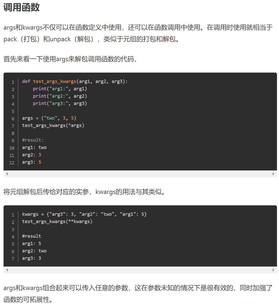 1.2. 调用的时候 *参数 和 **参数 的作用: